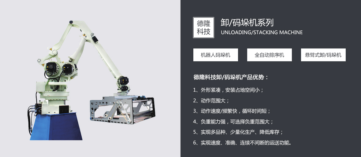 機器人碼垛機 懸臂式卸/碼垛機 接力式碼垛機 全自動排序機 全自動整層碼/卸瓶垛機 通過式全自動打包帶機